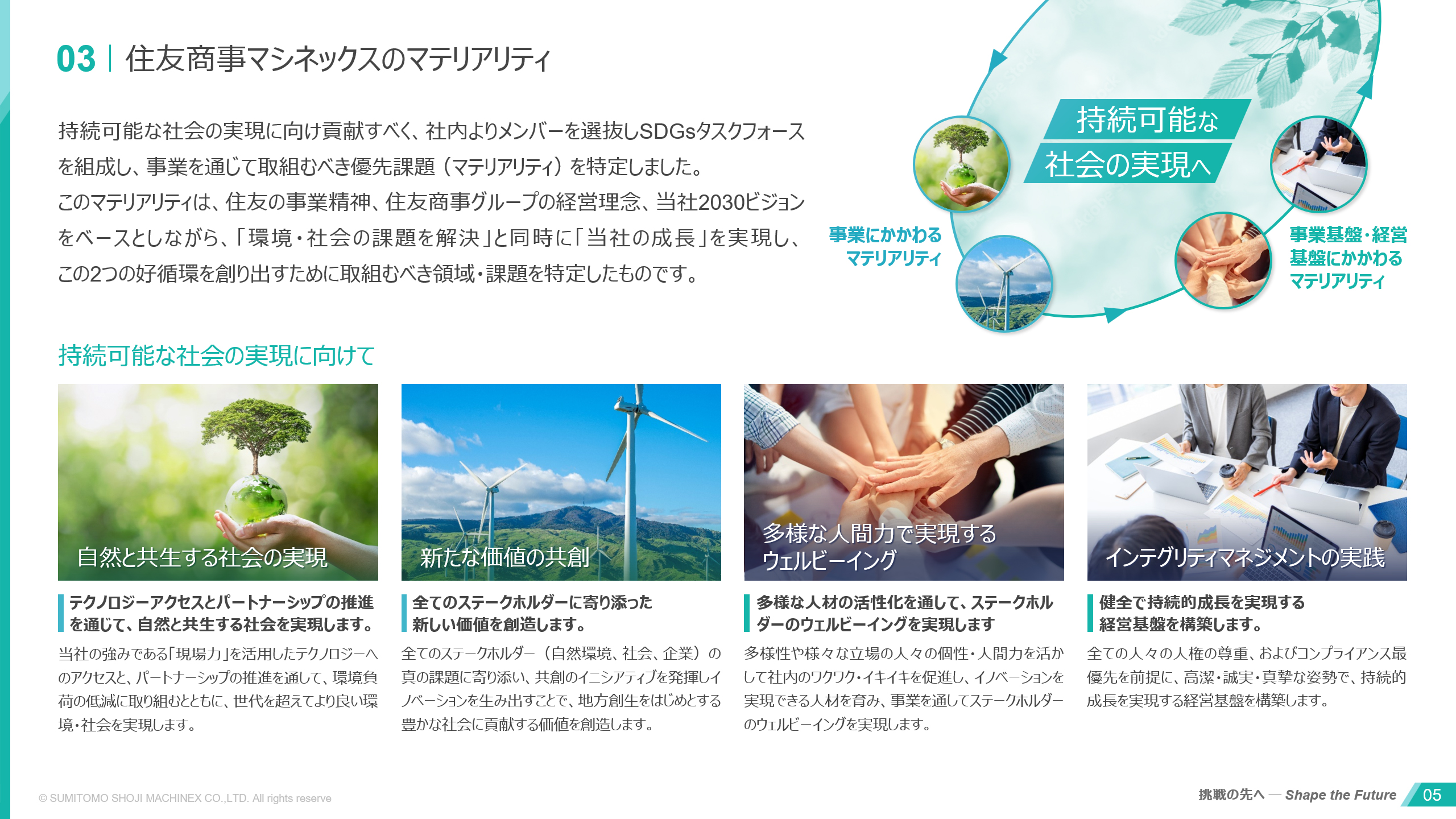 これまでの内容の改修に加え、「マテリアリティ」のページを作り、図案化するなどしてわかりやすく示したい。